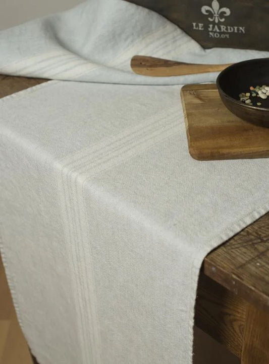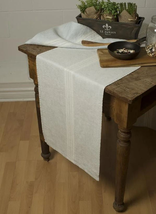 Stonewashed European Linen Table Runner with Ticking Stripe