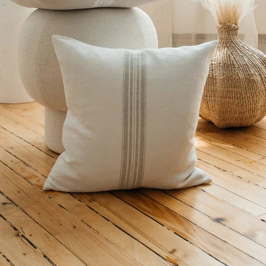 Austin Linen Pillow Cover White with Natural Thin Stripes 22 x22