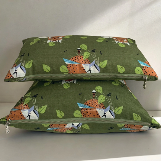 You will love the beautiful, vibrant designs including artist, Charley Harper’s stylized wildlife prints. Introduce a pop of colour, beauty and humour to your space with these sustainable organic cotton pillow covers! A conservationist as well as an artist, “Harper believed that humor made it easier to encourage changes in our attitudes and awareness of environmental concerns.”