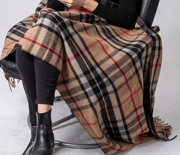 This beautiful throw is soft, warm and just the right size to keep your legs and toes cozy, or throw it around your shoulders. With bold autumn colours, this timeless Thompson Camel Tartan adds a classic touch to your home and keeps you warm at sporting events!