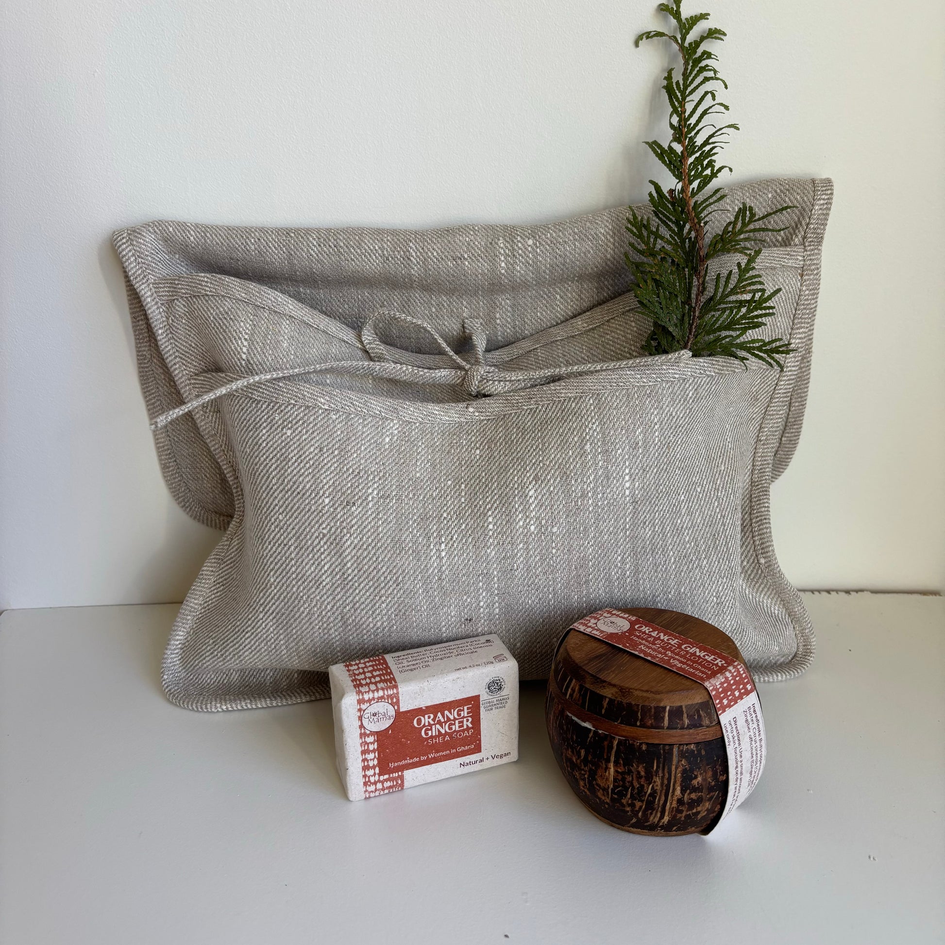 Natural Linen Travel Toiletry Bag with Shea Butter & Shea Soap Gift Set - Lavender