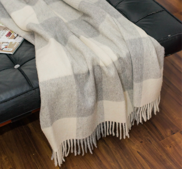 Soft and Sustainable Smoke and Ivory Wool Plaid Throw